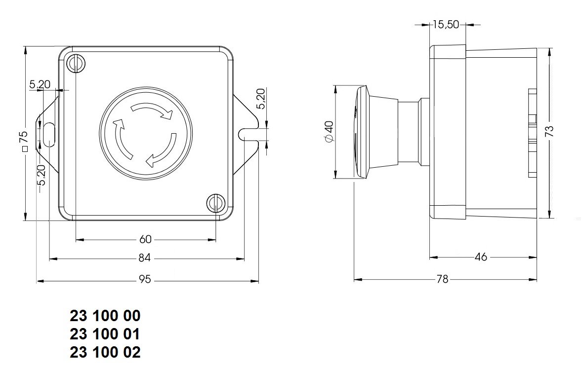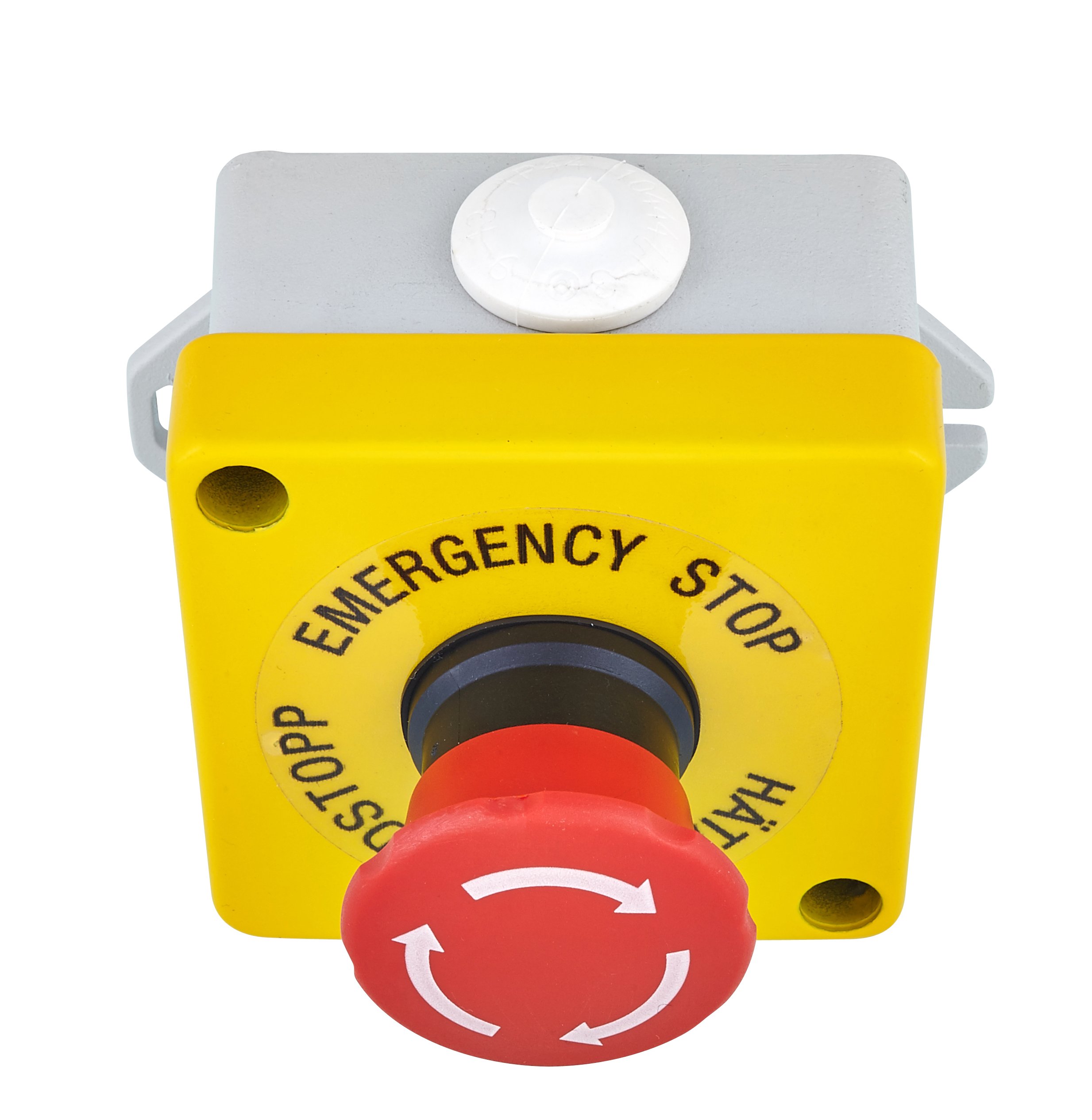 Em.stop: 90mmØ button, size: 100x100x130 (w*l*h), NO+NC/2NC/2NO,