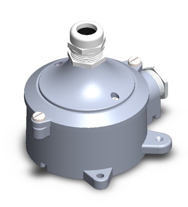 Aluminium cable gland seal entrance – stainless steel, pull-relieved skintop cable gland exit (trough cover), PG 16, cable Ø 11mm. Mantle terminals 5 x 2.5 mm2.