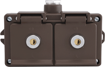 Aluminium cable gland seals PG 16, cable Ø 11mm and Ø 10mm in marine models. The springs of the hinged covers are of stainless steel. ABLOY CLASSIC key, by separate order, series locks are available. Brown. Other data as above.