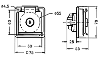 Switchgear socket-outlets, for installation on the surface of enclosed switchgear and distribution boards. The spring of the hinged cover is of stainless steel. Installation hole Ø 55 mm. Brown.