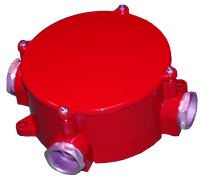 Pyöreä rasia, sisä-Ø 150mm. Toimitetaan punaiseksi maalattuna. Alumiiniset tai messinkiset PK 29 holkkitiivisteet moniosatiivisteellä. Riviliittimet 5x10 mm2 (750°C) lisäksi 16 mm2 maadoitusliitin.