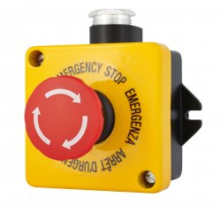 Hätä-seis painike kotelo tekstikilvellä IP44 tai IP67